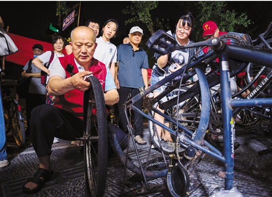 8月31日晚上,杭州中山北路和百井坊巷交叉口,一个身影出现在昏黄灯光下,周围站满了等着他的市民。每到周末,他总会来到这里,连续38年坚持义务修理自行车,从不间断。