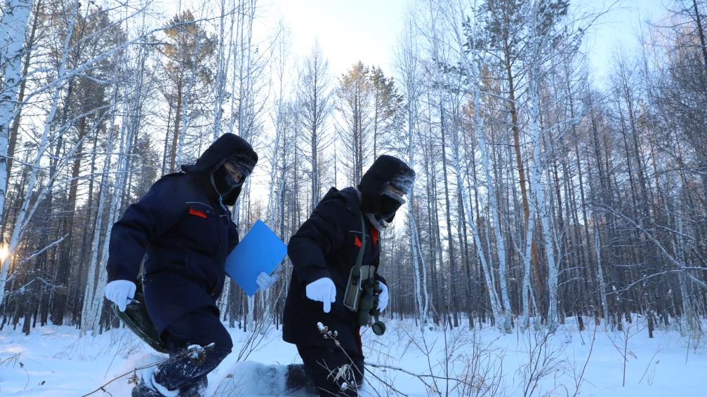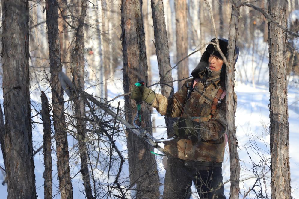 同样在严寒中攀山踏雪的还有大山深处的营林工人。