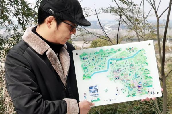 邬彬旭展示庙后周村手绘地图。