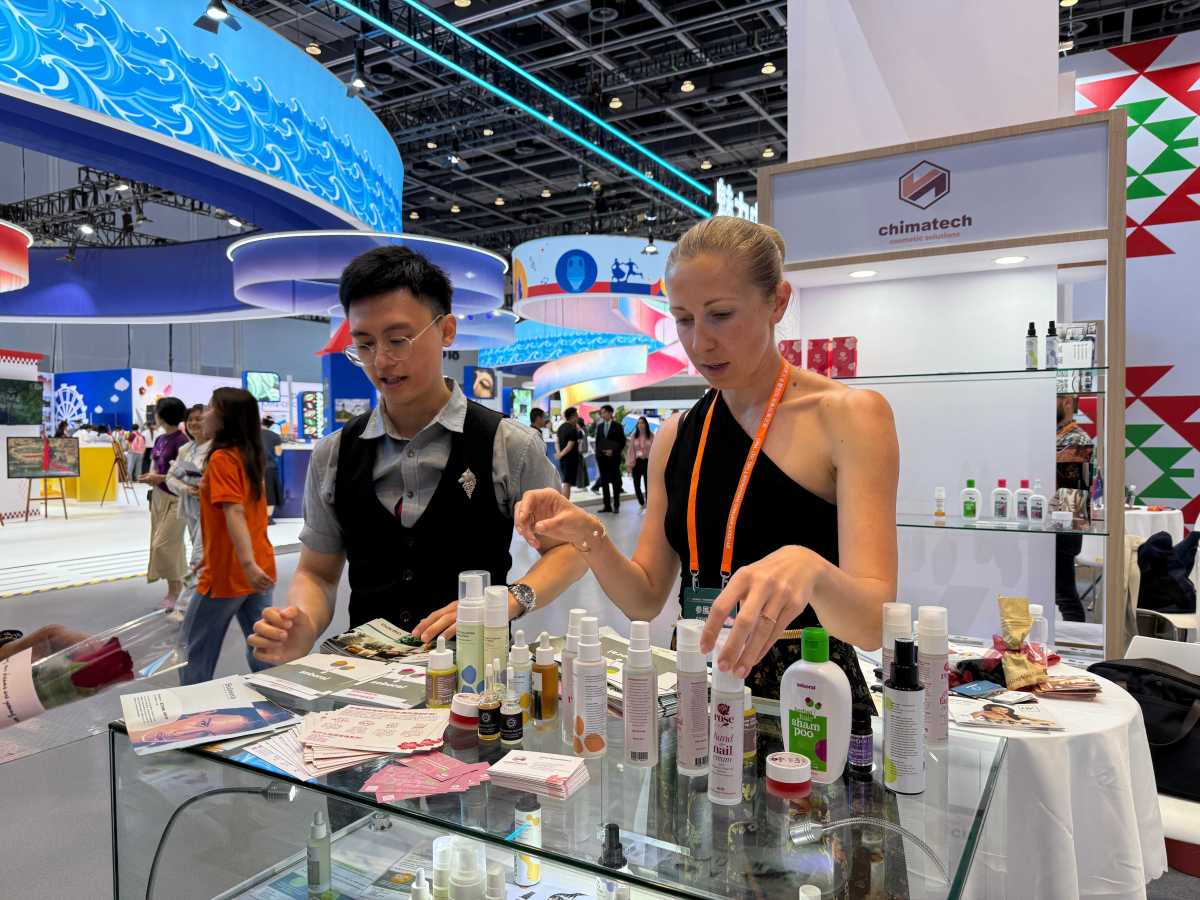 保加利亚品牌Chimatech公司展位上,摆满琳琅满目的玫瑰面霜、益生菌精华液、草本洗发水……吸引好奇的客商驻足试用。