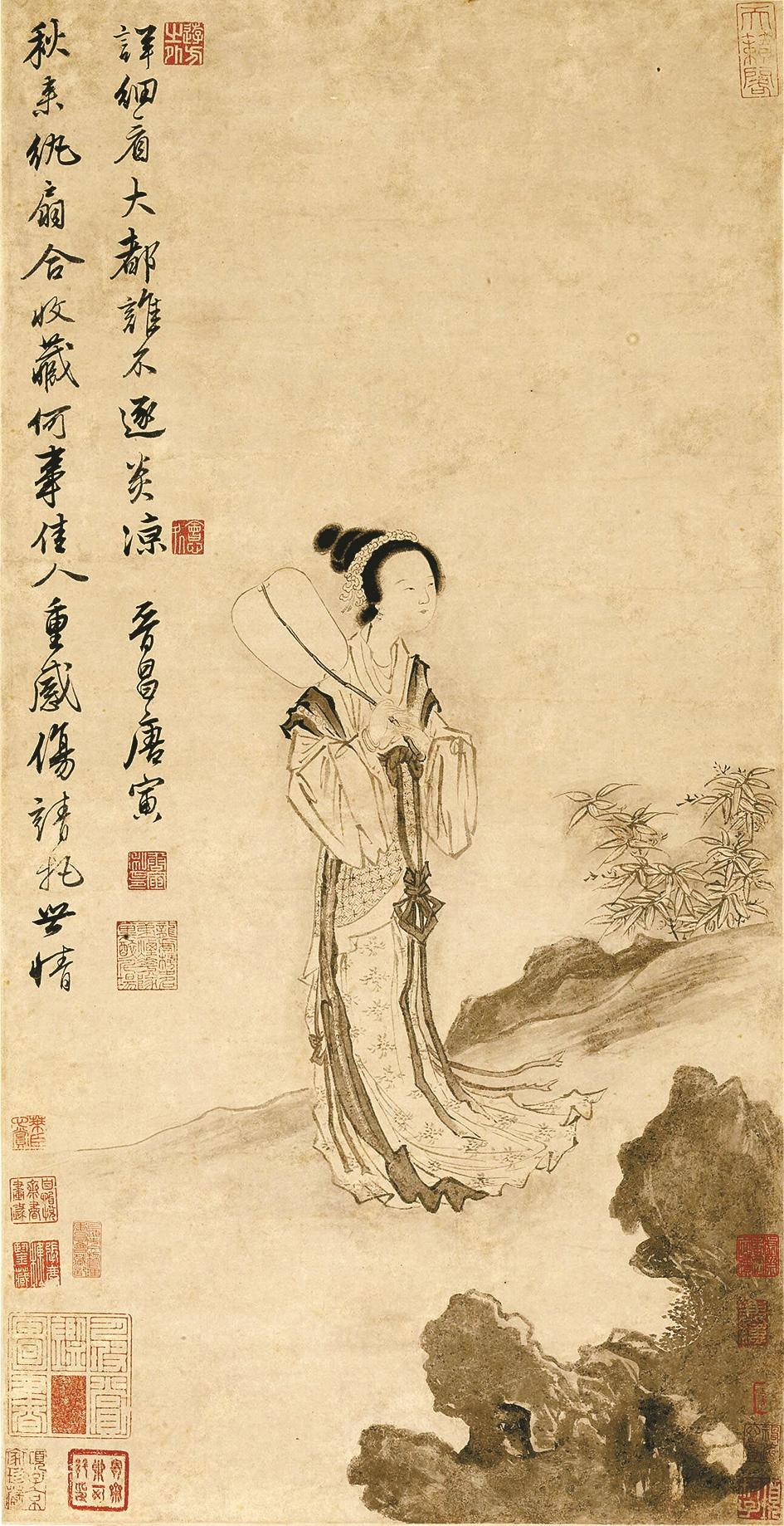 唐寅《秋风纨扇图》中的扇子,接近方形。