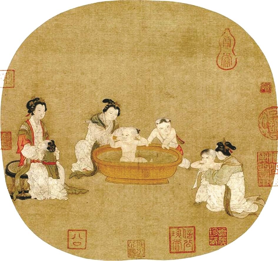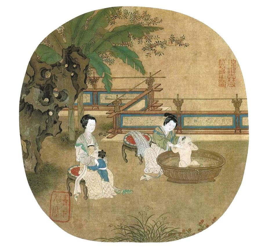 宋《浴婴仕女图》团扇画