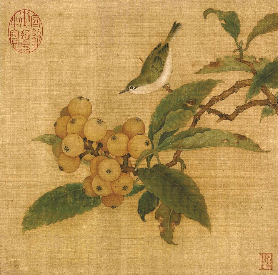 传林椿《枇杷山鸟图》。