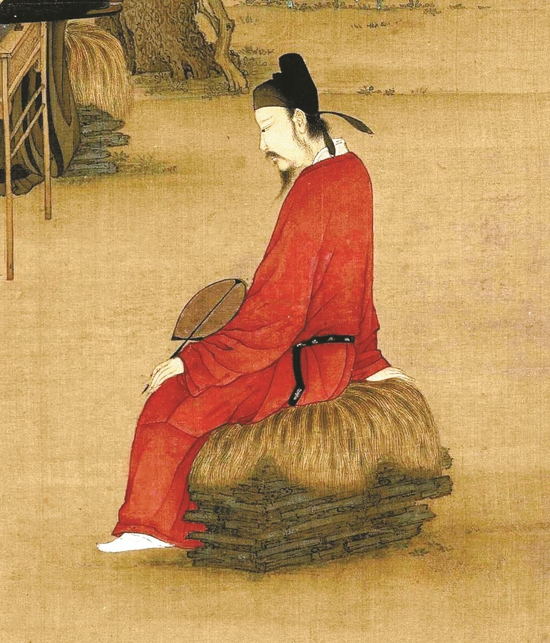 赵佶《听琴图》(局部)中的蔡京,持椭圆形团扇。