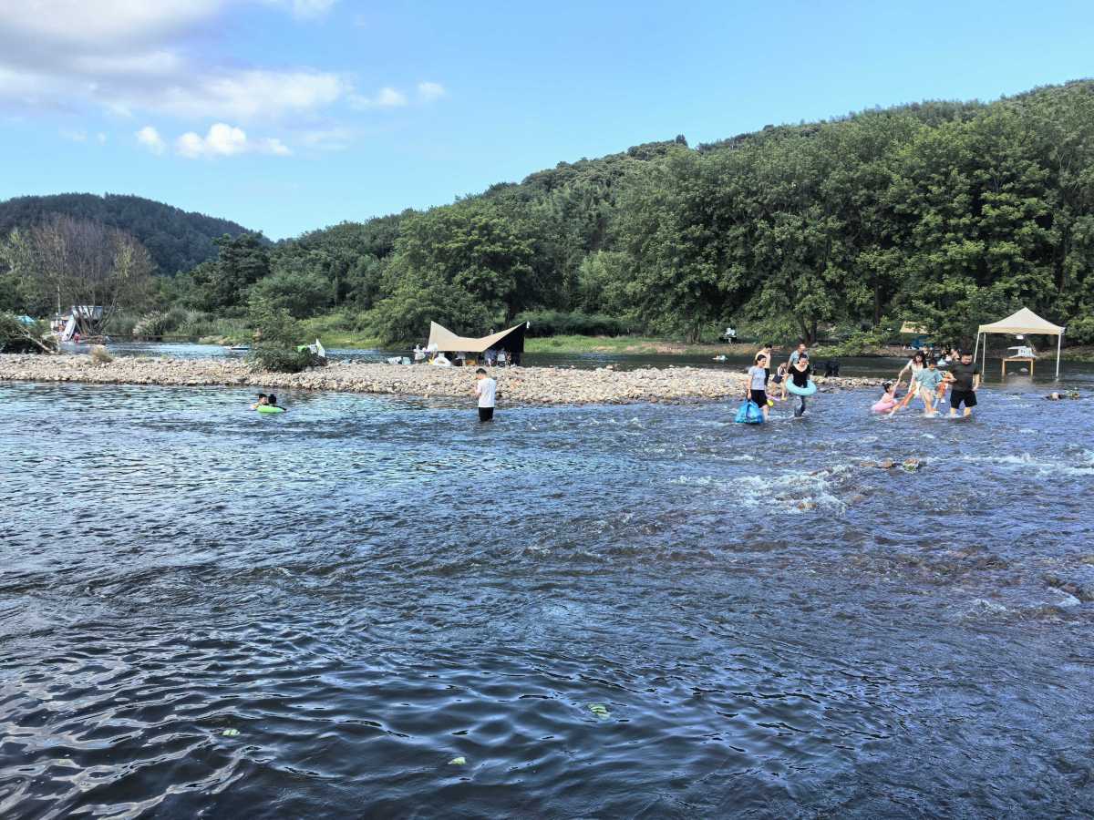 当地村民告诉记者,这里是樟溪河与一处山塘溪流的交汇地,不远处就是它山谷地,这几天上游在放水,水流蛮急的,但来玩水的人有不少,“等到双休日,来玩水的人更多,周边的道路汽车都停满了”。