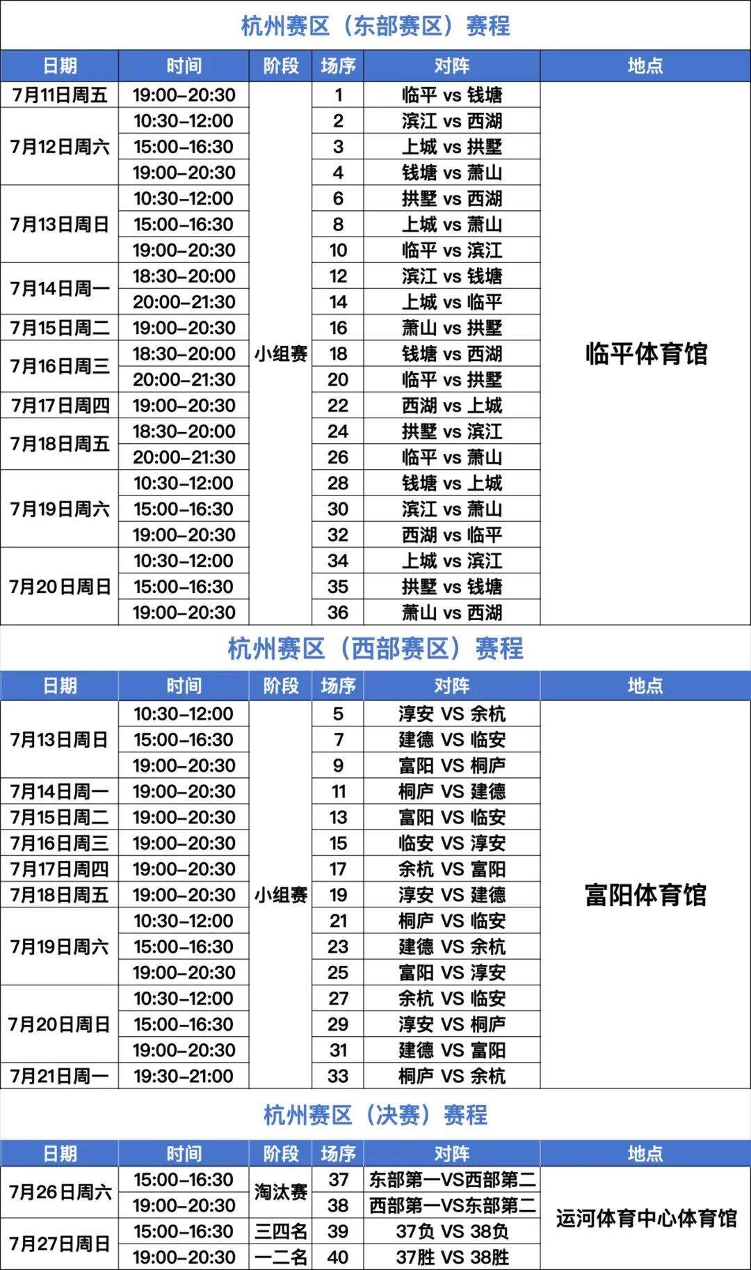 杭州赛区分为东、西部赛区进行小组赛,最终杭州赛区的决赛阶段的比赛将于7月26日至27日进行。