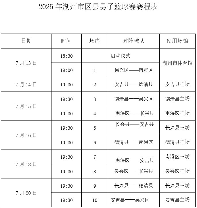 湖州赛区的比赛将于7月13日启动,将持续至7月20日。