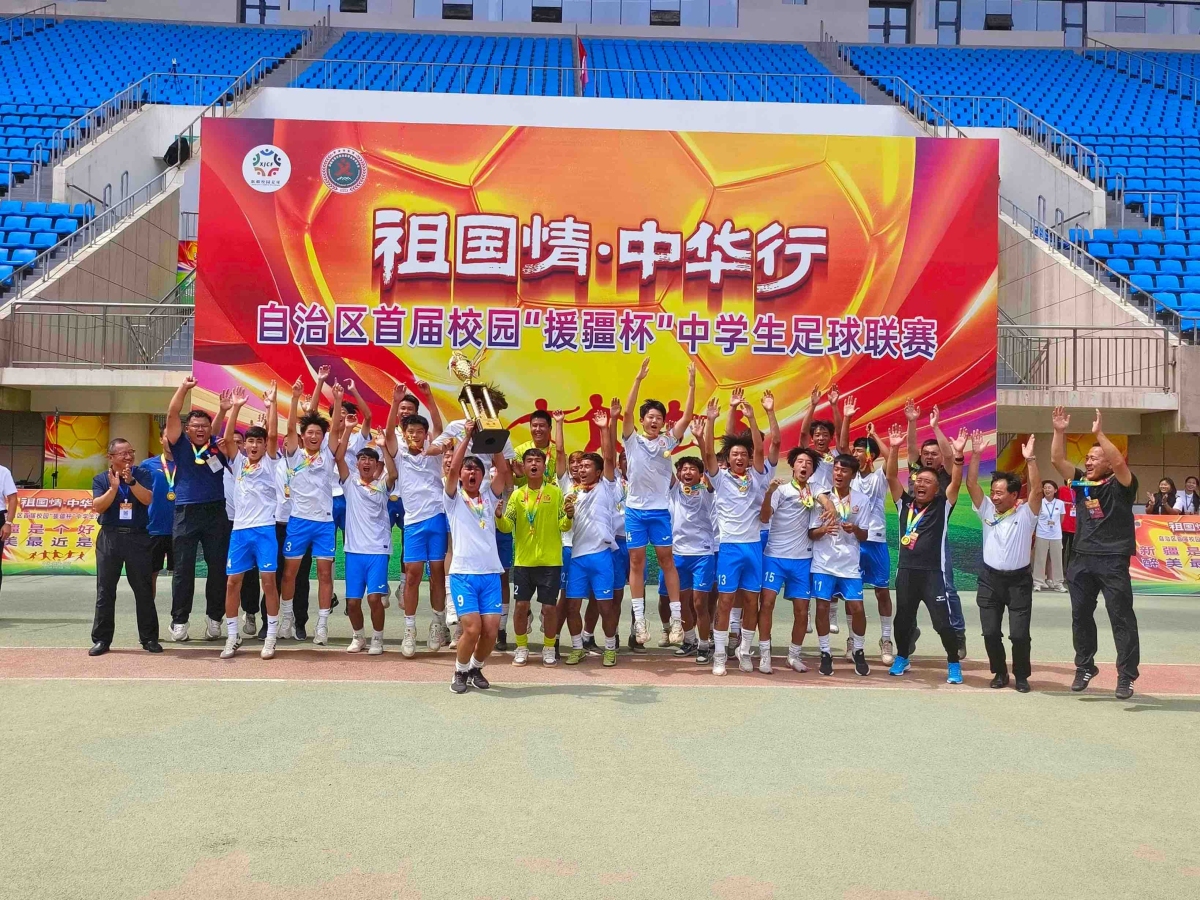 8月17日下午,新疆维吾尔自治区首届“援疆杯”中学生足球联赛决赛,在浙江·阿克苏“石榴籽”中学生男子足球队(以下简称“浙阿男子足球队”)和福建省、山西省及新疆维吾尔自治区昌吉市组建的足球队之间展开。