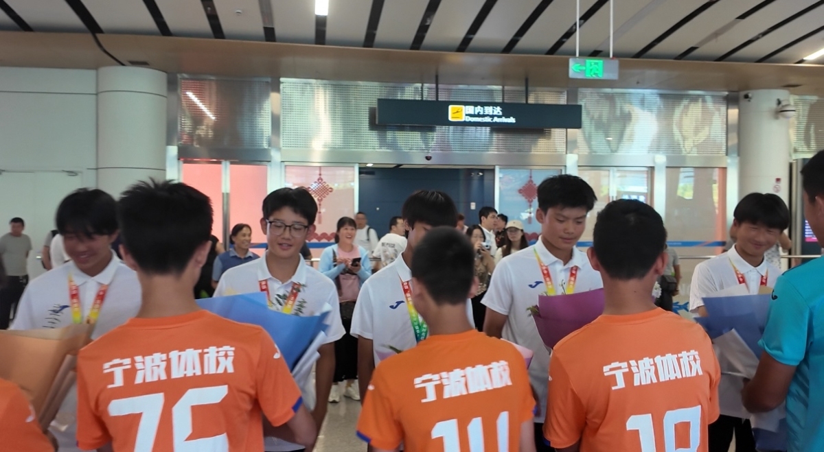 宁波市援疆指挥部、宁波体育运动学校、宁波市足球协会和运动员家长等相关人员前往机场接机。龚旭琪/摄