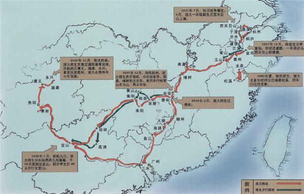 浙江大学“文军长征”西迁路线图,来源:浙江大学公众号。