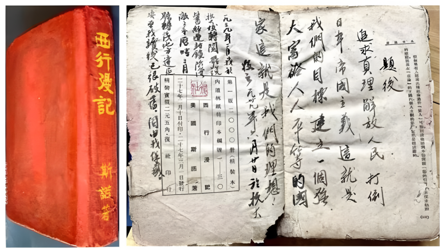 复社翻译出版的斯诺《西行漫记》封面及扉页(1938年版)