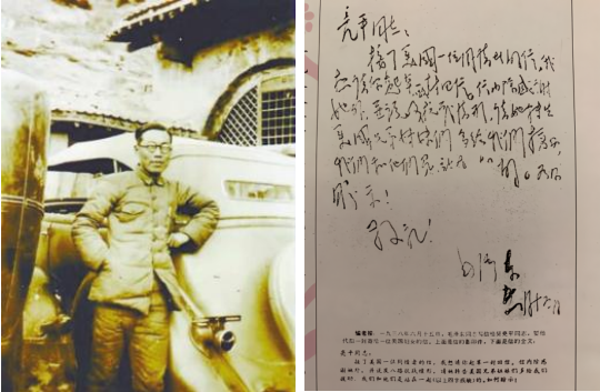 吴亮平在毛泽东主席窑洞边留影(1937年)、毛泽东委托吴亮平给国际友人回信的信函