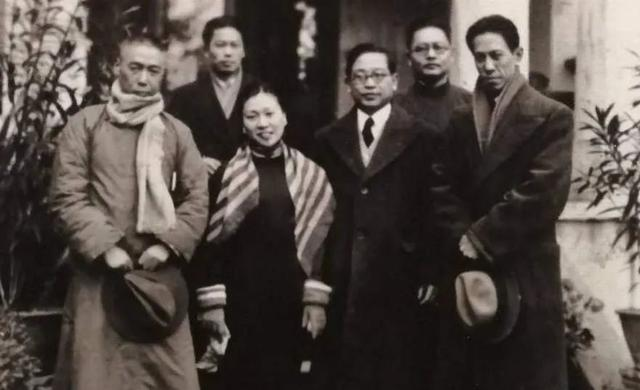 左起:田汉、马彦祥、俞珊、欧阳予倩、洪深、唐槐秋合影