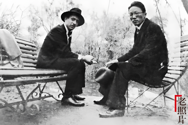 1930年11月,乐嘉煊(右)与法国世界语推广者贝莱尔(左)在汉口