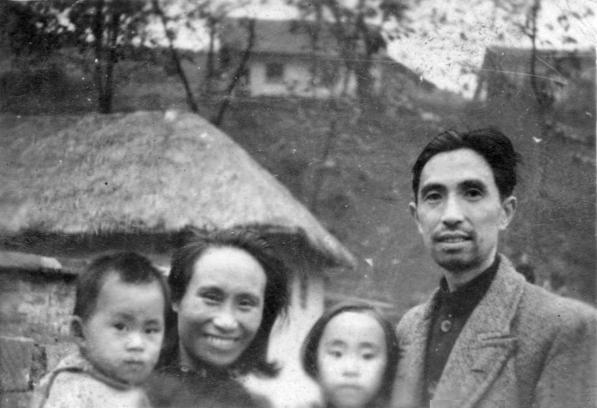 邵荃麟全家在重庆张家花园文协茅舍(1945年)。