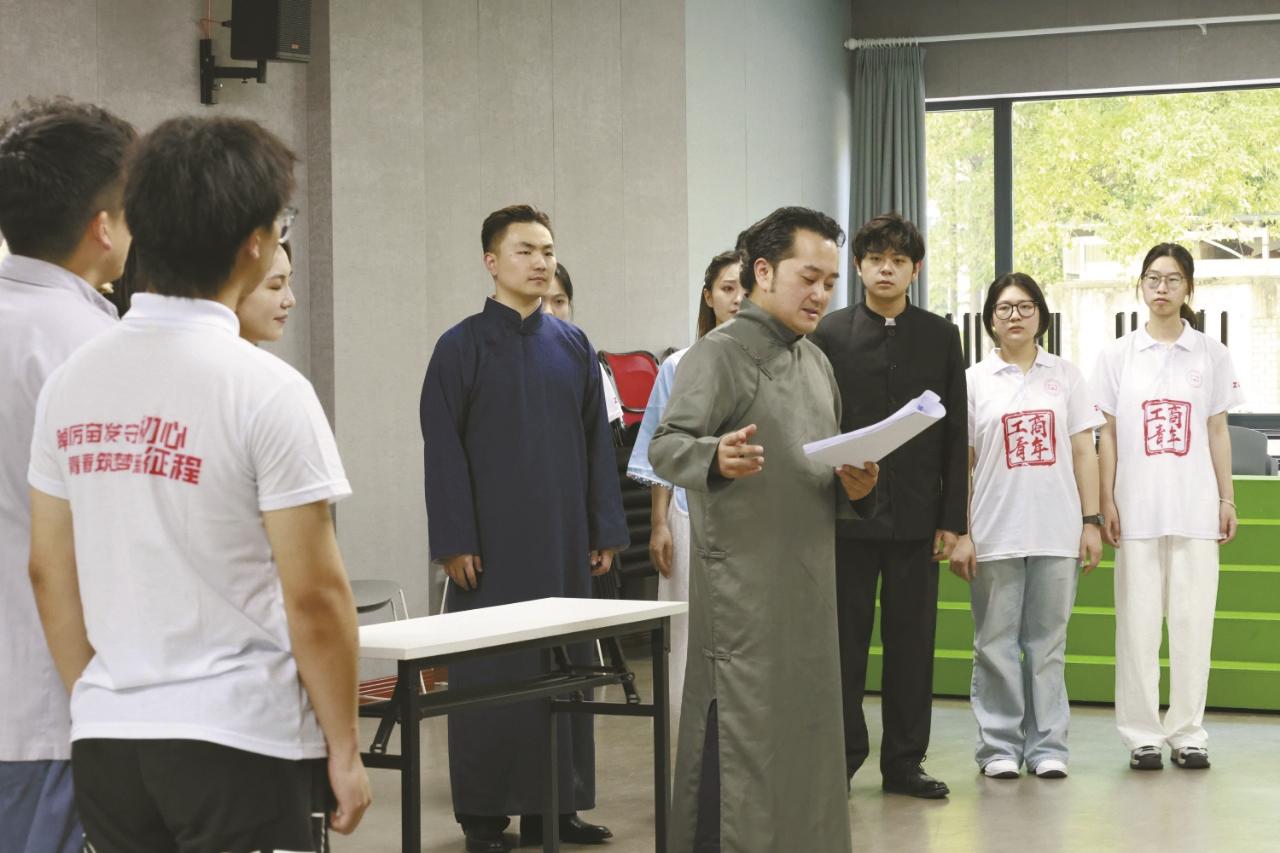 自6月起,同学们在专业老师的带领下研读剧本、背诵台词、反复走位,常排演至深夜。德育导师、海曙区曲艺家协会主席杨承江感慨道:“作为校外导师,我深刻体会到‘以文化人’的实践意义。同学们不仅仅是在排一部戏,更是在亲身参与中完成了精神的淬炼。这种投入和成长,正是思政教育与艺术实践深度融合的生动体现。”