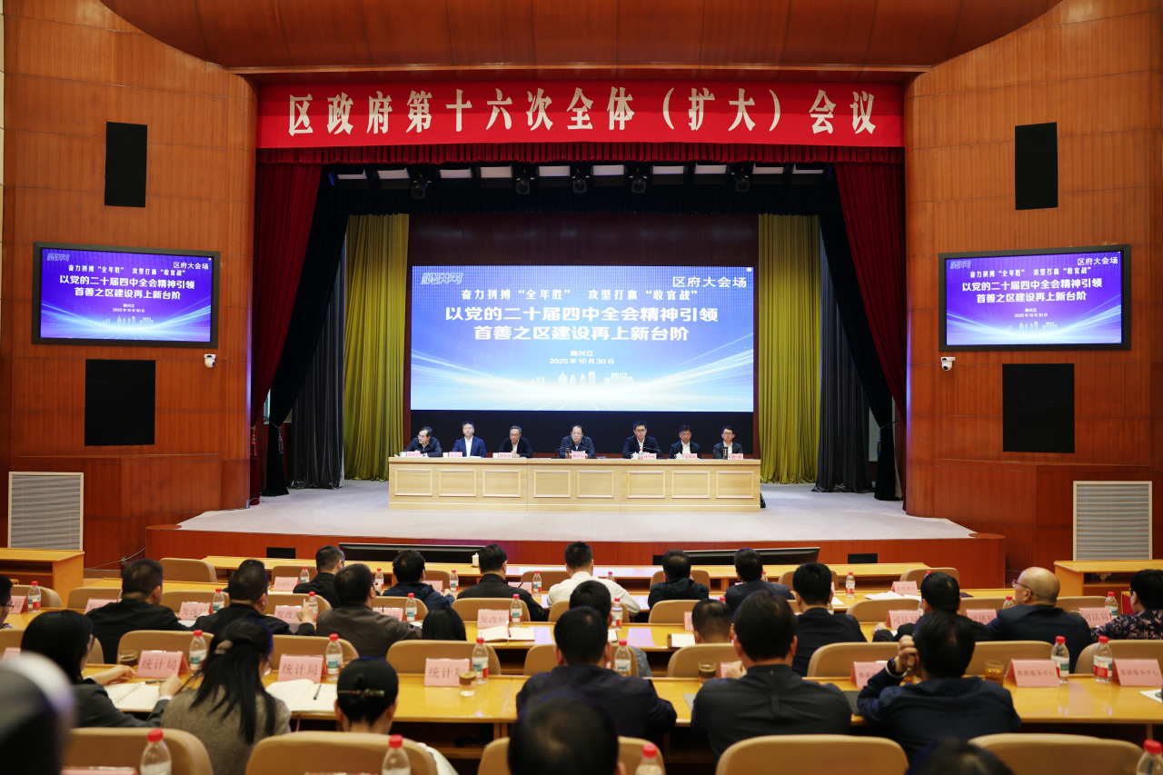 10月30日下午,区政府召开第十六次全体(扩大)会议,深入学习贯彻党的二十届四中全会精神,系统盘点上阶段政府工作完成情况,部署四季度重点工作。区委副书记、区长陈兴立在会上强调,要树牢实干争先的鲜明导向,凝聚决战决胜的磅礴力量,以更扎实的举措和更过硬的作风,奋力拼搏“全年胜”、攻坚打赢“收官战”,推动现代化滨海大都市首善之区建设再上新台阶。林丹枫、胡建涌、张尚兵、刘学文、俞其、陈建恩参加。