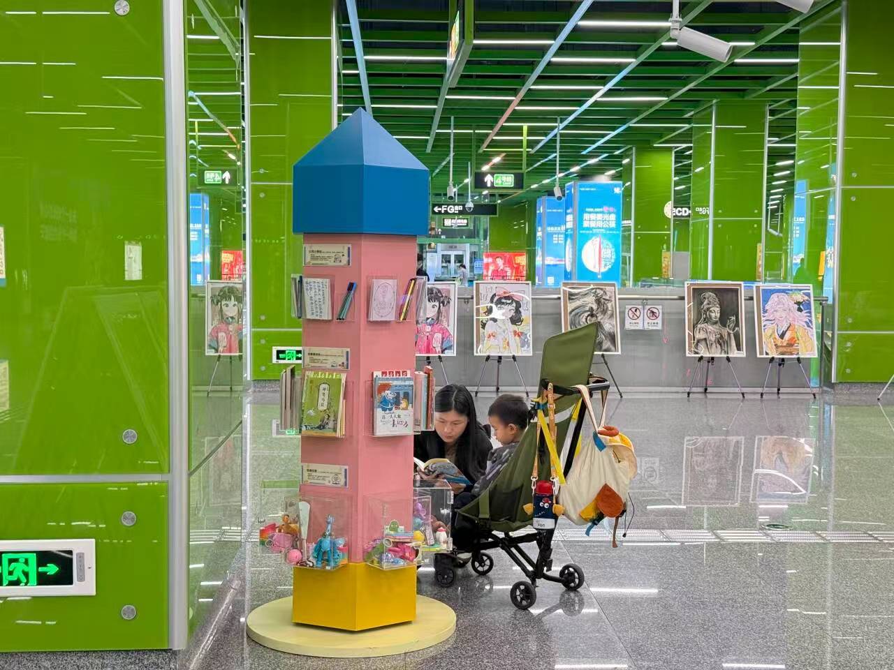 2025年,车站试点上线儿童友好通道,方便1.3米及以下儿童通行,同年7月,借助场地和区位优势,整合多方资源,推出宁波首个“地铁+阅读”空间,站内不仅设置阅读角、一平米博物馆等共享区域,还定期放映红色电影,并邀请退役军人、老党员讲述革命故事,既丰富了孩子们的暑期生活,也为周边居民提供了一个集文化体验与纳凉功能于一体的公共空间。