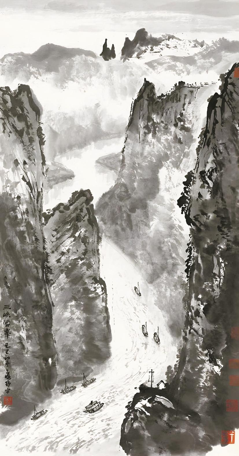 “四上黄山觉画难,峰峦无定白云寒。何时领略天心意,造化神奇到笔端。”晚年的应野平在画作中题下的这句诗,道出了他对艺术的永恒追求。他一生都在登攀,将云烟变幻、神奇莫测的大千世界驱入笔底,既不被古人束缚,也不被自然束缚,化自然美为艺术美。上世纪七八十年代,应野平进入“衰年变法”的辉煌时期,受陆俨少用笔、唐云点苔启发,他从“重色彩”转向“重墨韵”,在米芾“云山”之外,开辟出一片新的艺术天地。