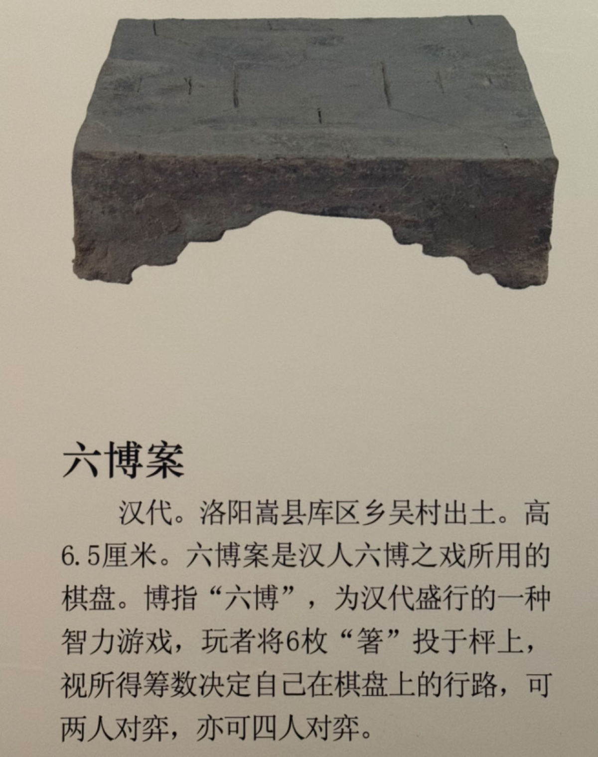 战国至汉代,六博之戏比围棋还要风行。我在河南博物院看到一件出土于河南灵宝市的东汉六博陶俑。博具中有六根箸,双方各有六枚棋子。说明上说,古人对博时先要投箸,根据投的结果决定如何行棋,最后一方将另一方的枭棋杀掉为胜。