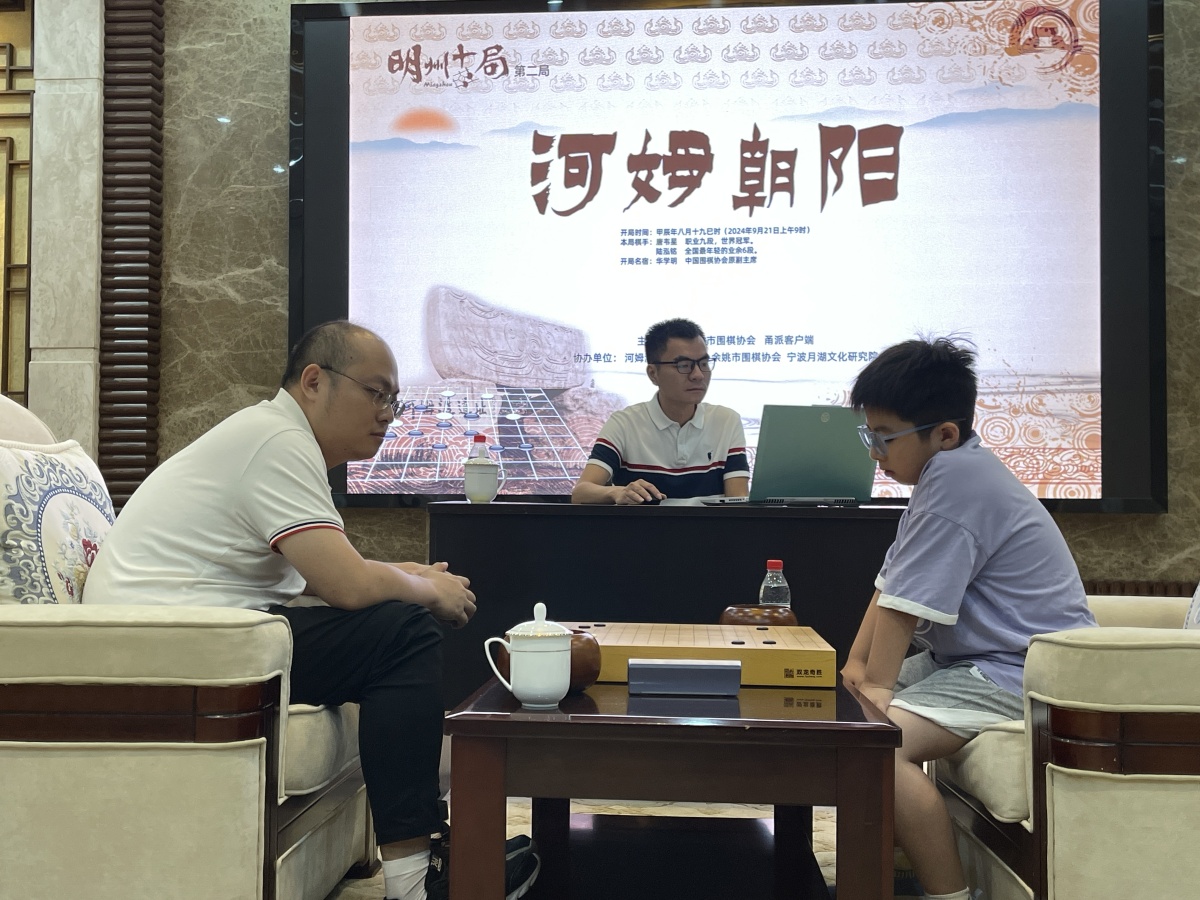 第二局由宁波市围棋协会、甬派客户端主办,河姆渡遗址博物馆、余姚市围棋协会、宁波月湖文化研究院、范钦文化研究会协办。