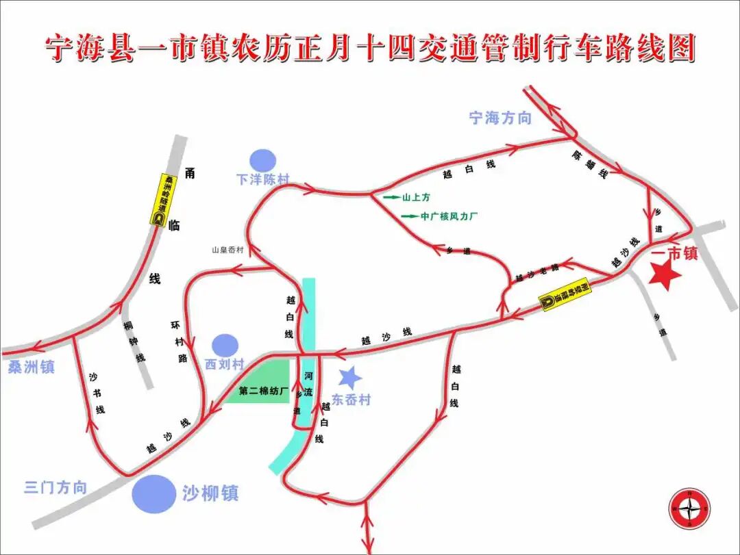 为确保宁海县一市东岙元宵活动、黄坛元宵大巡游、前童元宵行会的顺利进行,保障道路交通安全和参加活动人员的生命财产安全,根据《中华人民共和国道路交通安全法》第三十九条的有关规定,决定在各元宵活动期间对相应部分道路(区域)实行道路交通管制。具体事项公告如下: