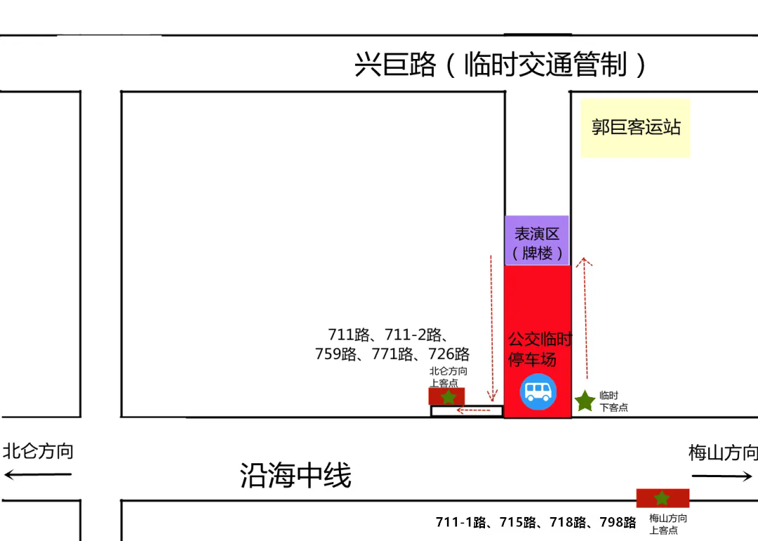2026年郭巨元宵民俗文化踩街大巡游活动期间,郭巨片区的公交线路将临时调整,具体如下: